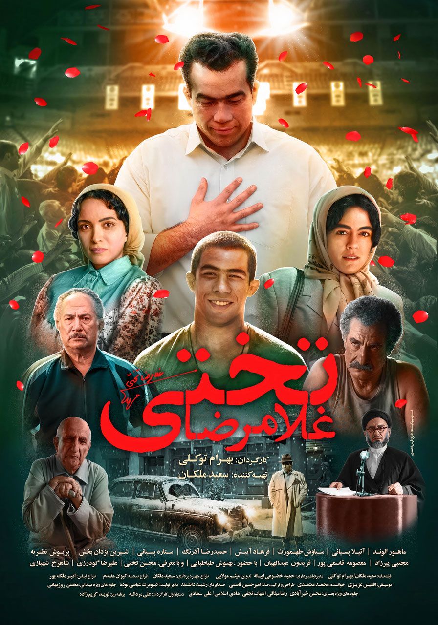 The story of the film "Gholamreza Takhti" begins with the reading and signing of his will and his suicide. Then, through flashbacks, it depicts his childhood spent in extreme poverty in Aloungah Khanabad, south of Tehran. His father, Rajab Khan, had an old refrigerator that was confiscated during the railroad expansion project, which further intensified their poverty and drove his father to madness. Gholamreza, who had a passion for wrestling, initially fails to become a wrestler in his adolescence but starts practicing alone while working at the oil facilities in Masjed Soleiman. Eventually, he leaves his laborer job in the oil fields, returns to Tehran to be with his family, and discovers his talent under the coaching of Haji Ali, also known as Poulad Abdul Hassan, at the Poulad Gymnasium. Gholamreza quickly becomes a member of the Iranian national wrestling team and wins a silver medal at the 1951 Helsinki Wrestling Championships and a gold medal at the 1956 Melbourne Olympics.